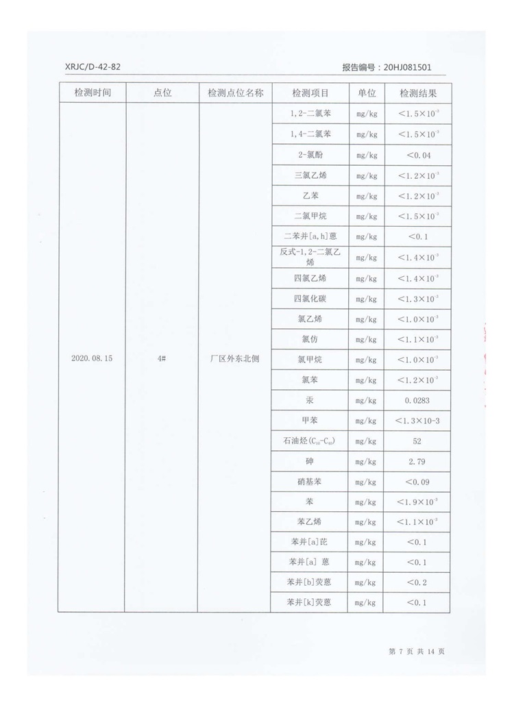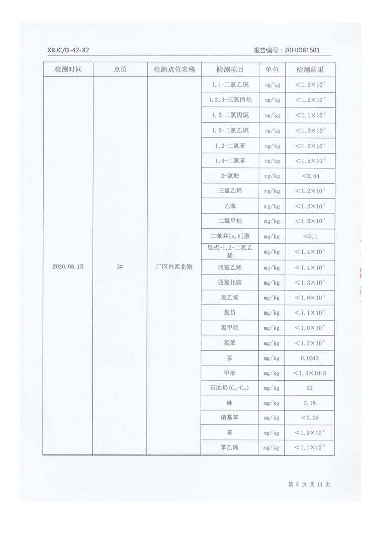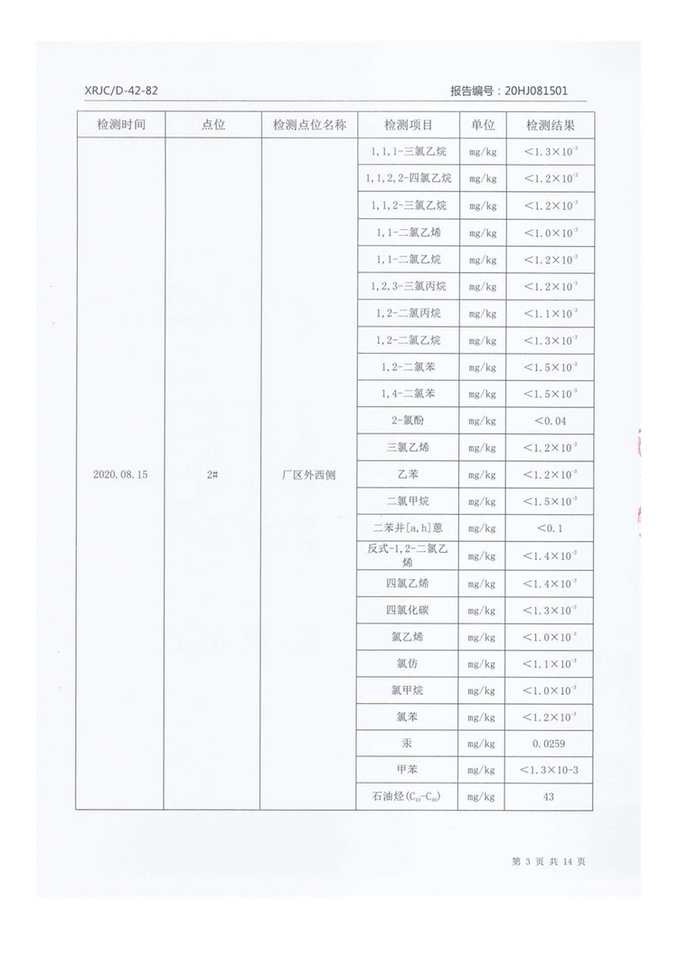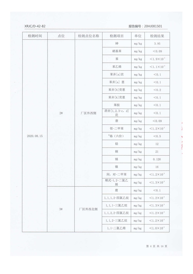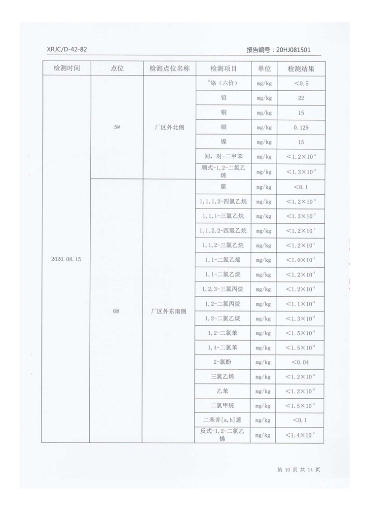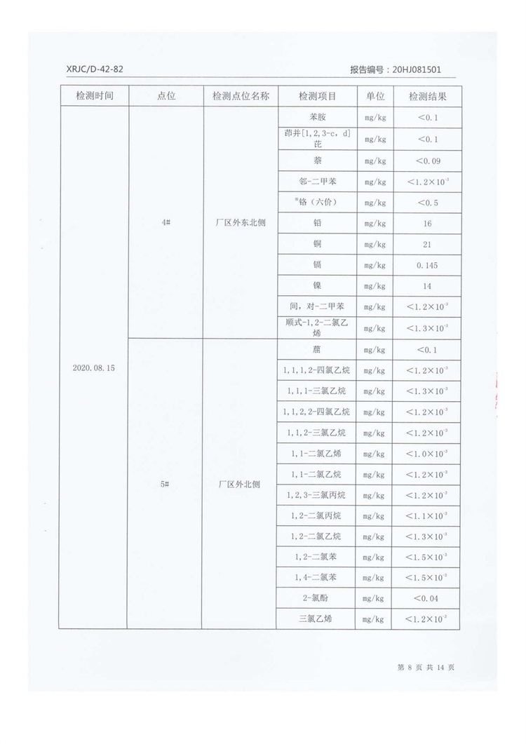 2020年8月厂区外土壤检测把报告信息公示
