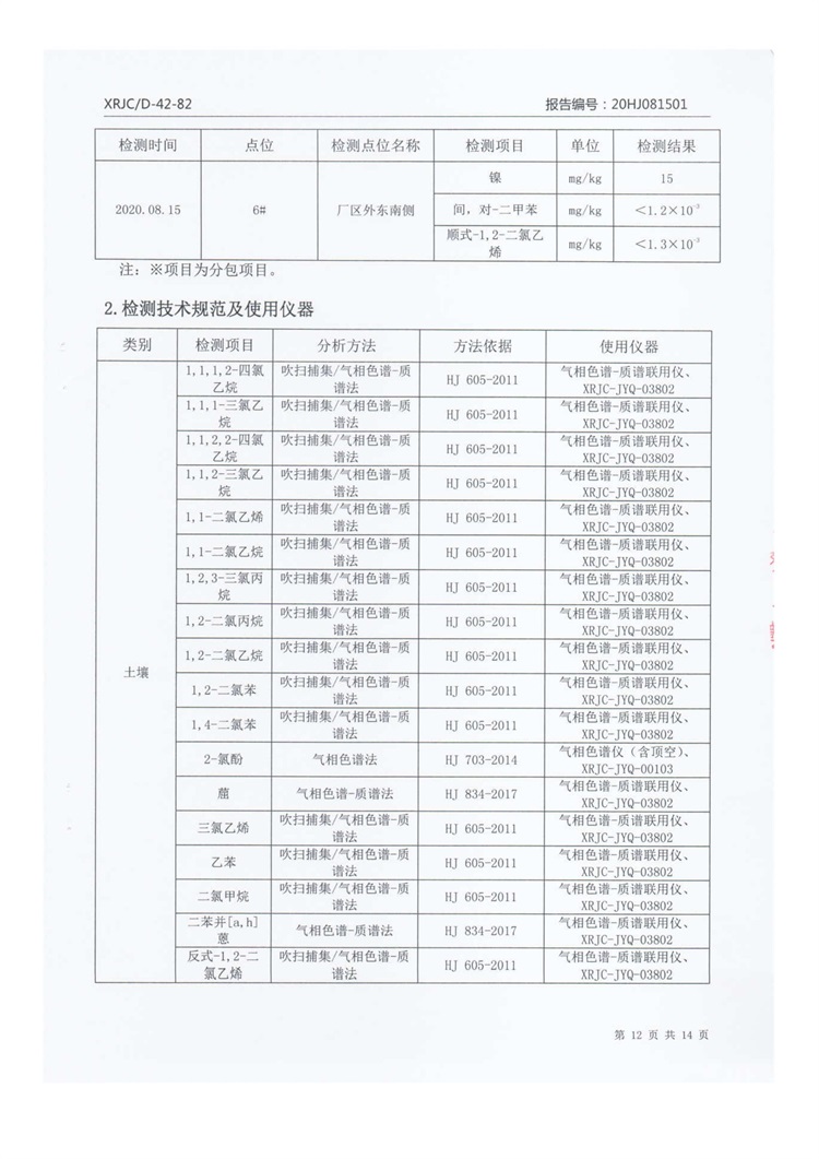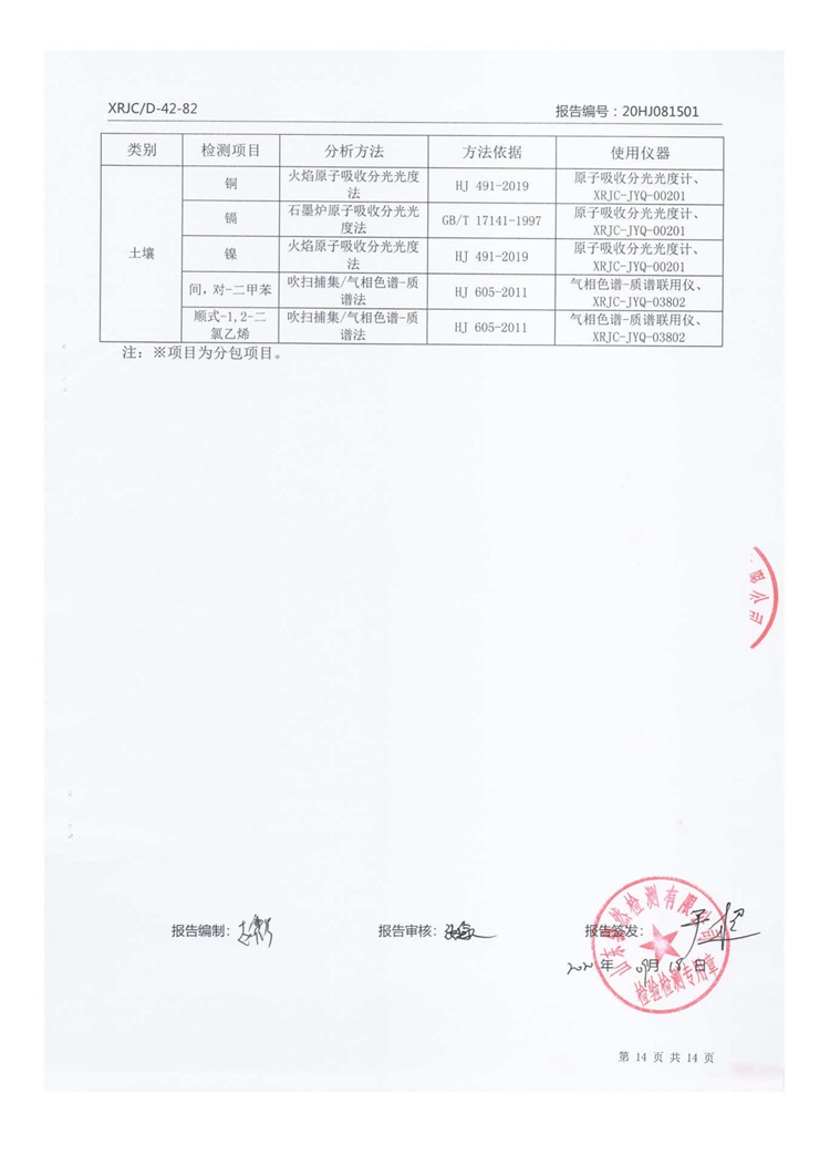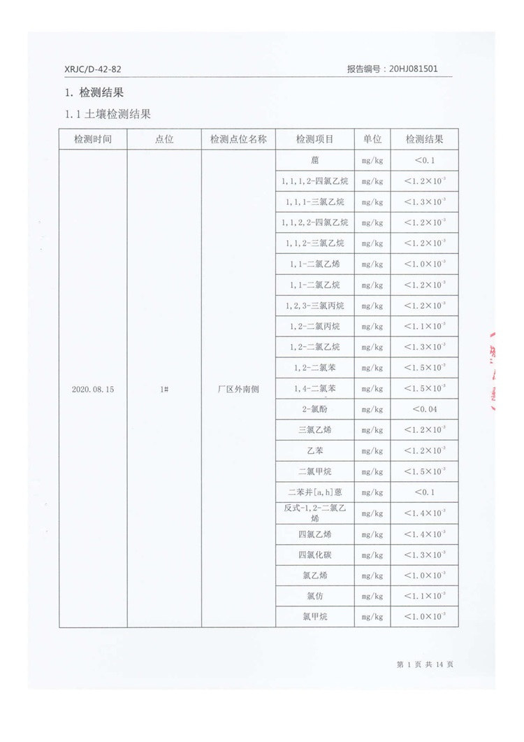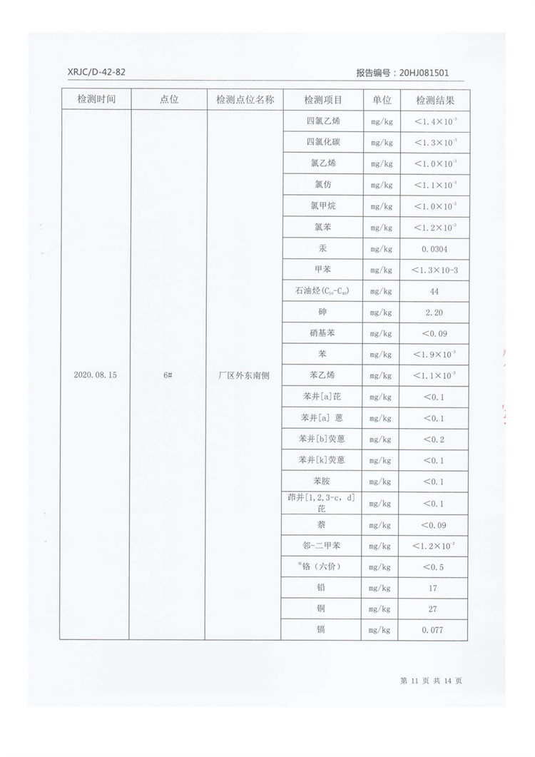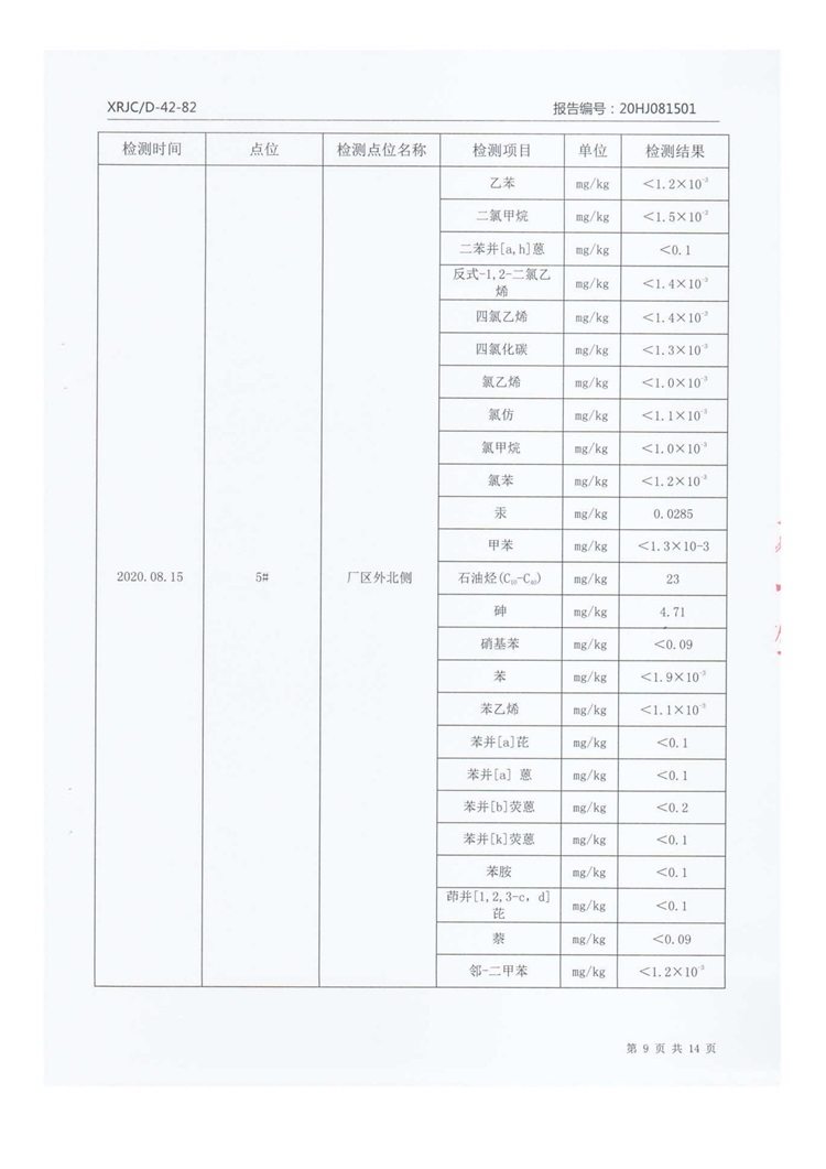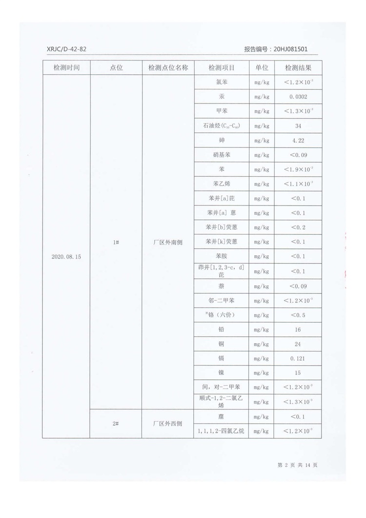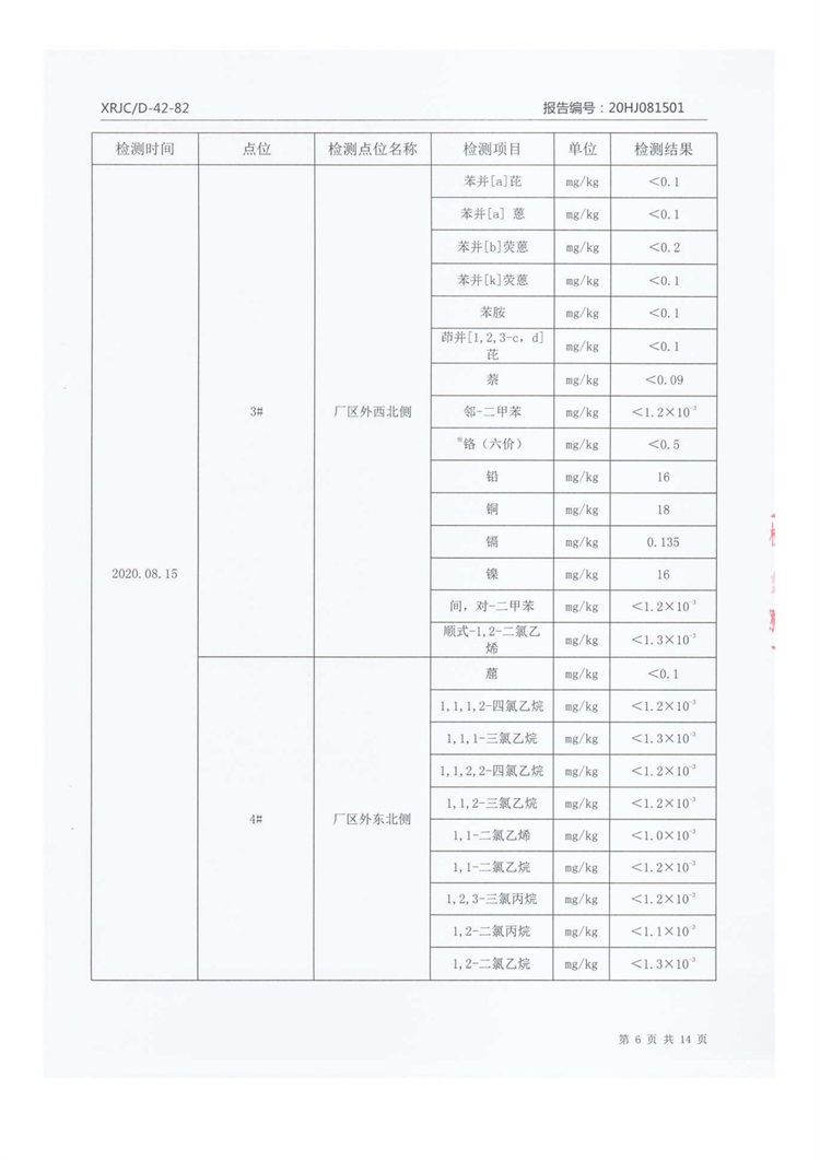 2020年8月厂区外土壤检测把报告信息公示
